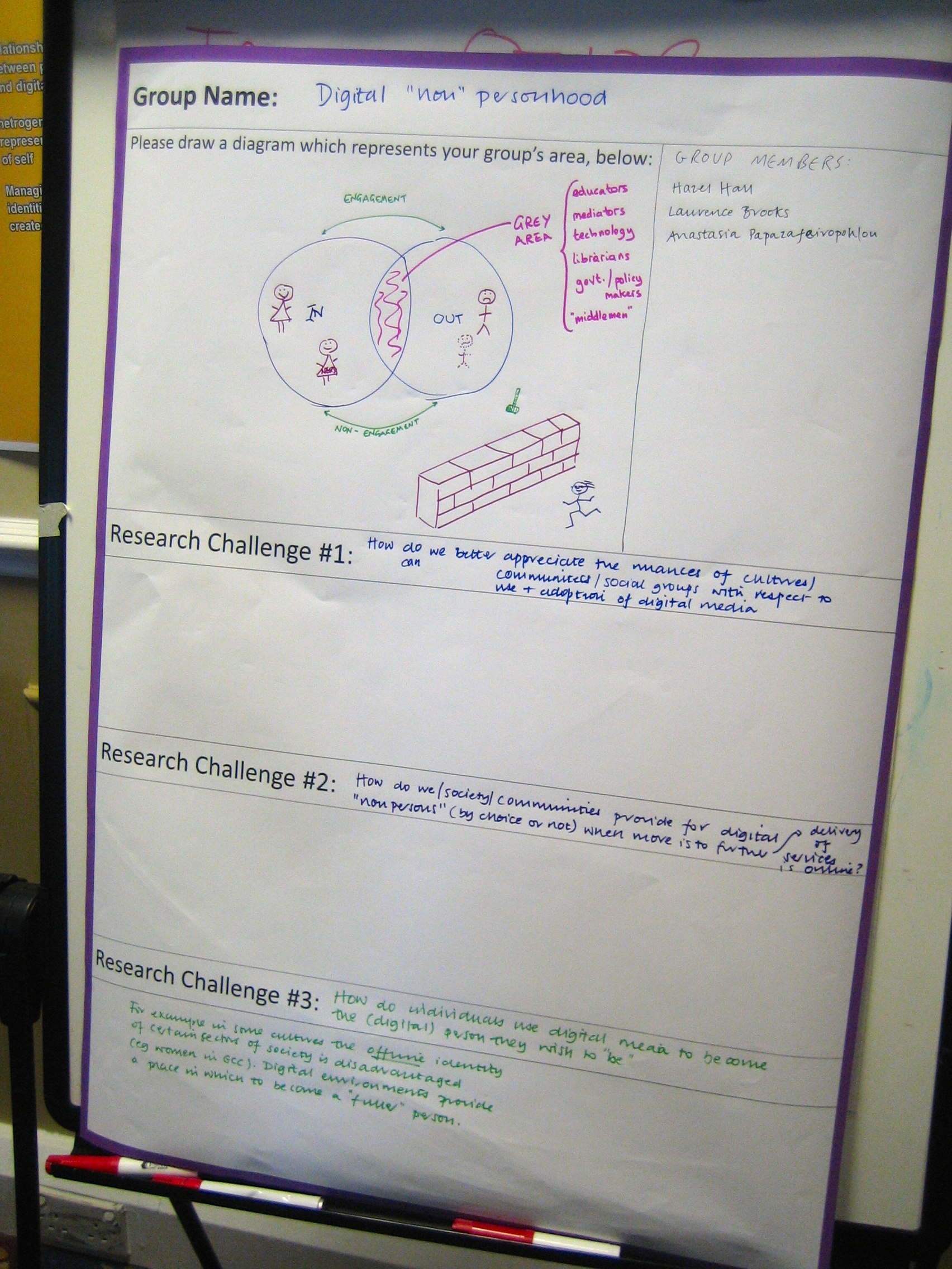 One of the most satisfying aspects of my participation at this first network meeting was witnessing how a range of highly innovative projects, and a lively well-networked research community, has grown from the seed of an idea expressed in a meeting room in Swindon in May 2012. I feel privileged to have been involved in the Digital Personhood initiative from the very start, and at each of its major milestones: the scoping workshop for the sandpit in July 2012; the selection of sandpit participants in October 2012; the sandpit itself in November 2012; the assessment of the five successful sandpit proposals in early 2013; and this first meeting of the Digital Personhood network.