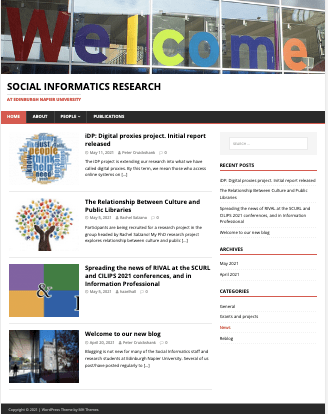 Over the past couple of months, my colleague Peter Cruickshank has been leading work on the development a new collaborative blog to showcase the work of our research group at Edinburgh Napier University.